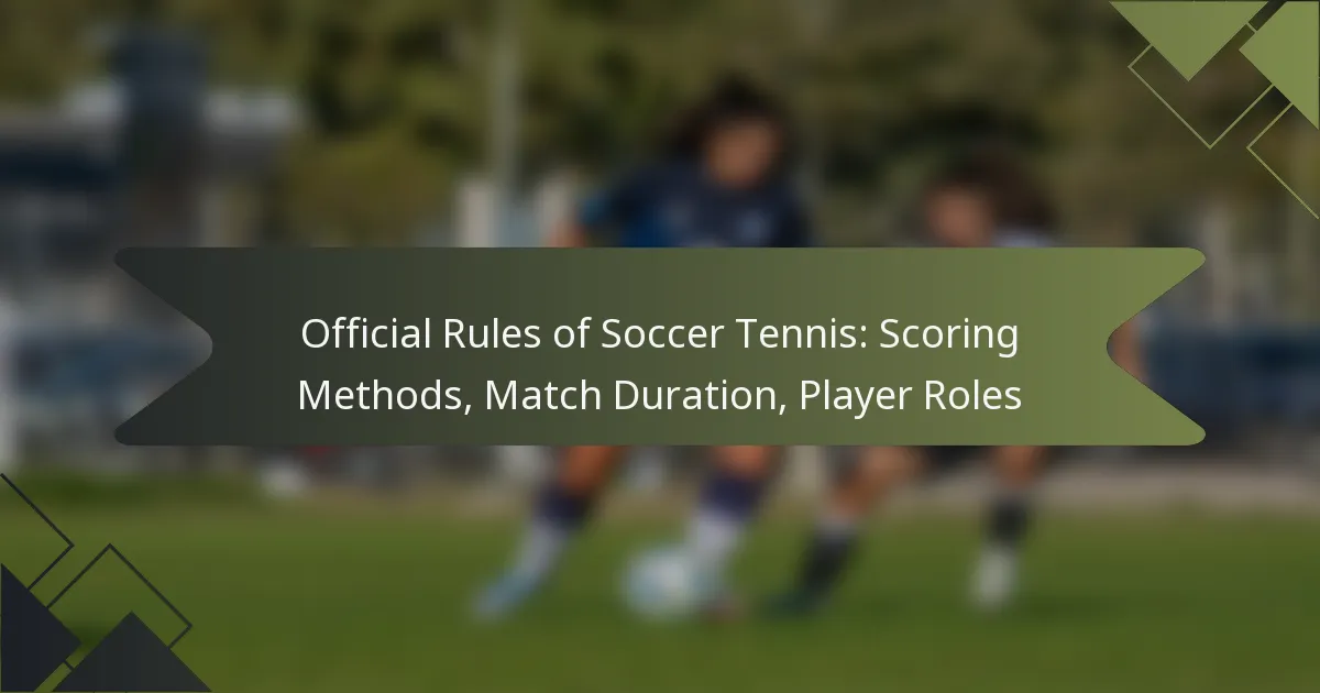 Soccer tennis combines elements of soccer and tennis, utilizing a point system where players or teams score by winning rallies. Matches can be played in singles or doubles formats, typically lasting between 30 to 60 minutes, and involve specific scoring rules. Player roles are essential, as each participant has defined responsibilities that impact the team’s overall strategy and performance.